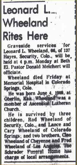 Cleo was ten months old in 1910 Decatur, Kansas. Cleo Wheeland married Kathryn Culley January 30, 1939. Cleo is a music teacher in 1940 Cheyenne, Wyoming, where most of the Wheelands are buried.
