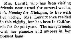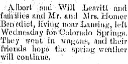 1899 "Wedding bells were rung at Lansing last Saturday for Miss Leavitt and Mr. Benidict."
