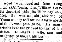 Harvey Carlton Leavitt registered with a Long Beach address, born Nov 26, 1891 in Ellwood Kansas, was a carpenter for Horsley Motion Picture Co., of Los Angeles. 1908 "Mrs. Leavitt's brother, Mr. Dolittle, is making them a visit. He will stay with them several weeks."