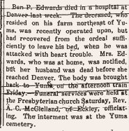 Ben P. Edwards died November 1917 and is buried in Yuma # 49486613.