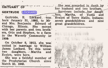 Gertrude 1892-1970 is buried in Yuuma # 51519877, with James Lockard 1888-1943.