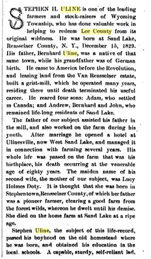 Stephen Holmes Uline 1828-1910 is buried in Lee County # 141351412,