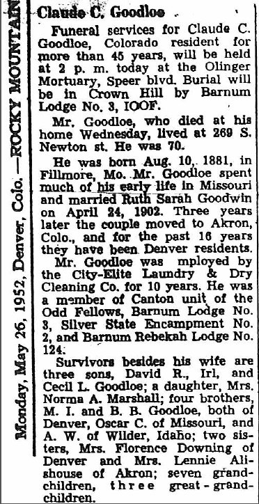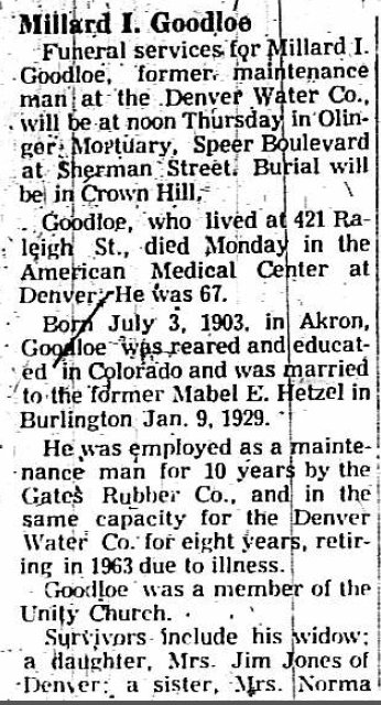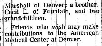 Virginia May Alishouse Foutz, 89, passed away on January 19, 2012 at the Hospice of Northern Colorado. Virginia was born on April 12, 1922 in Wheatridge, Colorado to John and Lennie Goodloe Alishouse. They returned to the Goodloe homestead 23 miles south of Akron in 1924. Attending Sunshine elementary school, Virginia rode her horse with her younger brother, Walter every day for the following eight years . Because of the distance from town, in order to attend high school, Virginia had to board with various families in Akron. She graduated from Akron High in 1940. After graduation Virginia was courted by her future husband Eldred E. Foutz , who was working on her father's ranch. They were married March 15, 1941. Eldred began teaching in a country school near Akron but WWII interfered with their plans. Virginia got an emergency certificate and finished teaching that school year. After the war Virginia and Eldred began farming south of Akron and continued to do so until 1969. They then operated and later purchased Akron Propane Service. Virginia was bookkeeper for this business and for the Akron Federal Credit Union until retirement in 1980. They spent the next 12 years traveling abroad and throughout the country in their motor home. Virginia was active in the Akron Methodist church and all of the various organizations her family pulled her into. She was a homemaker, organizer, teacher, confidant and friend to all she knew. Eldred passed away in 1998. Virginia remained at the family home until 2006, at which time she moved in with daughter Marcia and son-in-law Wes on their ranch north of Fort Morgan. She remained there where she enjoyed being outrageously spoiled until her death. Virginia is survived by her daughters Anita Weir-Ball and Marcia Johnson and their husbands James Ball and Wes Johnson; sister Sarah Alishouse Colson, brothers Walther Alishouse and Marvin Alishouse; grandchildren Lori Weir, Leigh Meyering, Tony and Ryan Mercer, John and Vern Johnson and Jay Waldron and 14 great grand children. A funeral service was held Monday, January 23, 2012 at Brenner Funeral Home. Interment followed at Akron Cemetery. Memorial donations may be made to the Hospitality House at the Northern Colorado Medical Center or to Hospice of Northern Colorado |