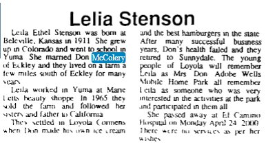 In 1940 Eckley precinct, Donald McColery is 32, born in Nebraska, farming, with Leila E. 28 born in Kansas.