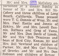July 1949 "Mr and Mrs. Donnie McColery, Jr., of Loveland visited Monday night and Tuesday with Mr. and Mrs. Glen Rockwell and family."