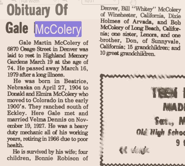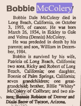 Thanks to Gary McColery, who wrote "His brother Don McColery of Colorado had body shipped