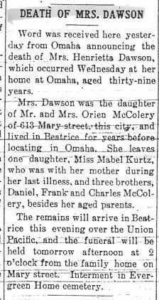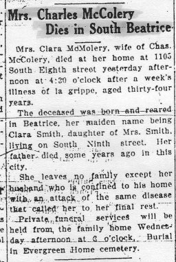 Clara died in 1918, and is buried in Beatrice.