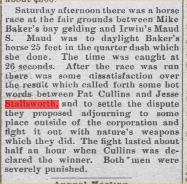 Jesse Stallsworth died at the home of his son Sherman, near Eckley, Saturday,
