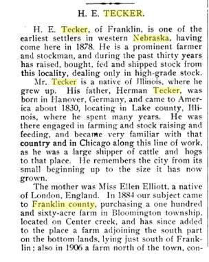 In 1900 Franklin County, Nebraska, H.E. Tecker is farming,