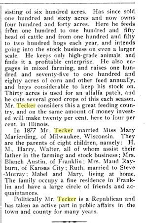 Harmon Tecker 1851-1928 is buried in Franklin County # 6789555, with Mary Ellen (Marfording) Tecker 1851-1924.