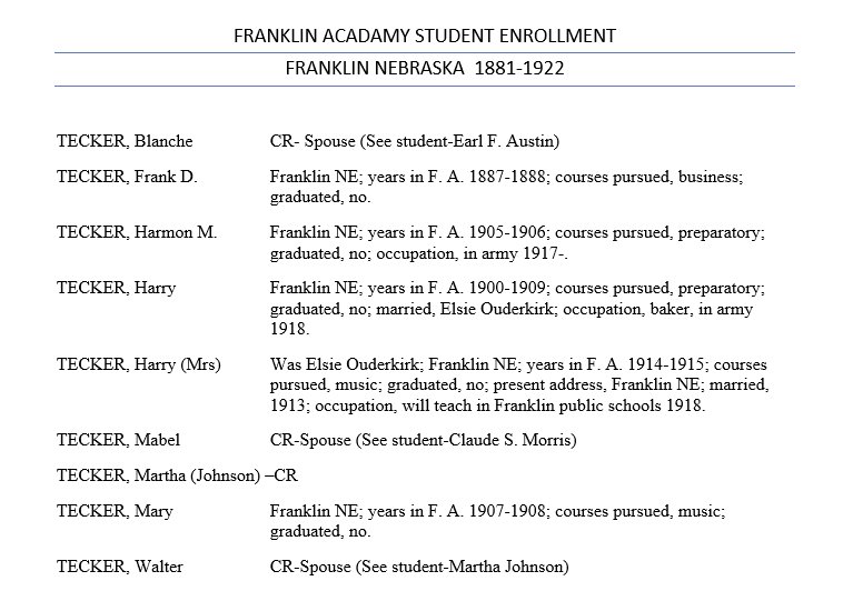 Harmon E. Tecker is in Franklin County, Nebraska