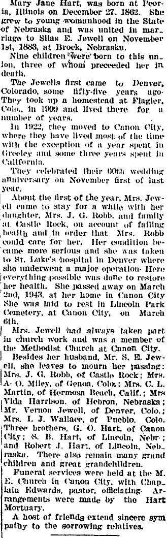 Mina C. Jewell married Bernard Gilman Sept 22, 1924, recorded in Teller