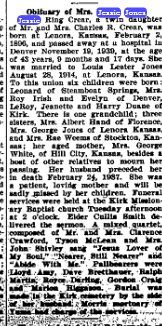 Jessie R. Jones 1896-1939 is buried in Kirk # 47613576.