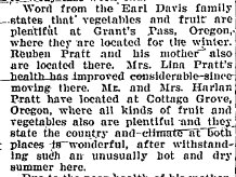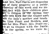 August 20, 1936 "The Earl Davis and Harlan Pratt families left Friday morning for Oregon to make their home."