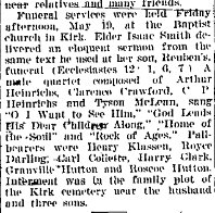 February 21, 1935 "Mrs. Florence Shaw received word Friday of the death of her brother, Henry Pratt, who resided in Minnesota. Mrs. Shaw was unable to go ther, and Mrs. Avery Nash, a daughter residing at Idalia, left to attend. Henry Pratt was a brother of the late Alva Pratt of Kirk."