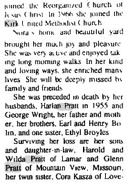 Harlan K. Pratt 1896-1955 # 67354651 and Nora E. Pratt 1903-1991 # 67354652. are buried in Kirk.
