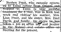 December 3, 1931 "Earl Davis and family and Harlan Pratt and family and Ruben Pratt had Thanksgiving at the Alva Pratt home."
