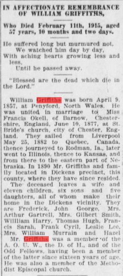 One tree said William married Matilda Okell Griffiths - born March 3, 1896 in