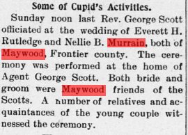 September 1907 Box Elder, Nebraska "Mrs. Murrain of Maywood visited her
