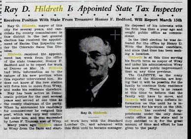 January 1931 "Mr. and Mrs. Rayburn Crum came from Hillrose Tuesday night and Mrs. Crum is staying in Wray for a few days to look after the Riverside cafe while Chub Hildreth, the proprietor, is spending a few days in Denver. Mrs. Crum is a sister of Mr. Hildreth. Mr. Crum returned home Wednesday. "