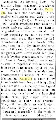 The Colorado on-line index has Alfred CAMPLAN and MAUD Kempton