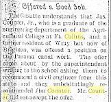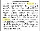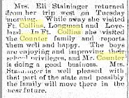1901 "Harry Cox this week bought the Counter home. He moves to town to give his children better school advantages. Mrs. Counter and the children will leave next week for Fort Collins, where Jim will attend college.