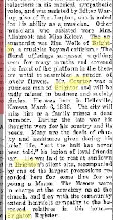 James was one of the many children of Charles Counter /Caunter and Jane Adelaide WATTS. Charles was born in England, immigrated to Ontario, Canada, where James was born, and thence to Belleville, Kansas
