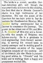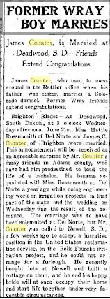 James Clarence Counter registered for WWI in Butte County, South Dakota, where he was working for the U.S. Reclamation Service. He said he was born May 5, 1884. He's still there in 1920, married to Hedvig from Austria, and they have James. M 7., born in South Dakota.