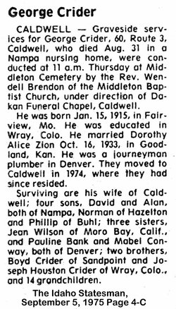 George is buried in Canyon County, Idaho 1915-1975 # 77091858.