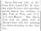 June 2, 1910 McCook Nebraska "Mr. and Mrs. Wilbur Fisk of our city attended the