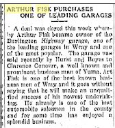 October 1911 "Arthur Fisk returned from his visit to Kansas City last Monday.