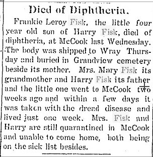 Letha M. Fisk 1877-1905 is buried in Wray # 17936457.