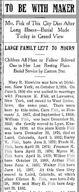 In 1900 Dundy County, Nebraska, Harry Fisk, born June 1872 in Kansas, is living with mother Mary. Fisk 49. Immand K. is 24, Myron N. is 22, Wilber 19, Arthur C. 16, Walter 12, Clinton B. 9, and Mary B. 7.