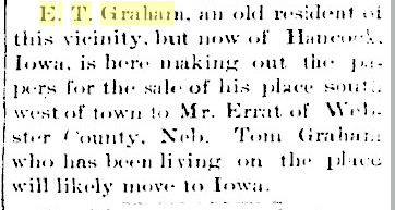 Elisha T. Graham had proved up a quarter in 11, 1S 45W in 1899.