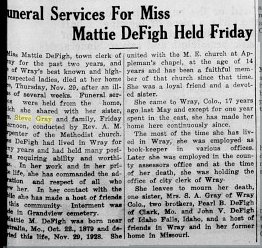 April 1915 "Miss Mattie DeFigh and Miss Bertha Gray departed Saturday