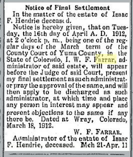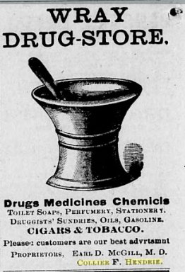 In 1886 Wray, W.F. Farrar was the first town treasurer.