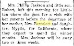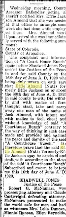 June 19, 1919 Philip Jackson, Son of Yuma County Pioneers, Central Figure in Sensational Case in Brighton District Court — Both Wives Present. ( Brighton Blade ) Philip Jackson of Littleton and Denver has been on trial for the past two days on a charge of bigamy. The jury is still out as we go to press. Judge Class who is defending Mr. Jackson closed his arguments at noon and the case was submitted for the jury's consideration. Both the Mrs. Jackson have been in the court room during the trial. All of Monday morning and part of the afternoon was taken in obtaining a jury. The jury and all of the spectators will testify to the good taste of Mr. Jackson. Mrs. Jackson No. 1 is a beautiful brunette of the Juno type, while the second Mrs. Jackson is a lovely blond, rather petite. Mrs. Effie Jackson testified that she became acquainted with Jackson at Denver university and was married to him in August, 1915. They have one child, Robert Jackson, 27 months old. After living at Wray, he sold out his business, she came to her father's home while he looked for another location. This was the time, she said, that he began to run around after other women. On cross examination Mrs. Jackson admitted he had always supoprtcd her and the child. When asked by Judge Claws if she wanted to see him go to the pen, she hesitated and then she said she wanted to see justice done. Ruth Cockran of Denver, Mrs. Jackson No. 2, declared emphatically that she did not want him to go to the pen and would much prefer to see him walk out of the court house a free man. Miss Cockran recently got a divorce. They were married in Brighton, June 1, 1918, the day of the Knights of Pythias Red Cross carnival, after an acquaintance of six months. She testified he proposed three times, first she said no, the second, I'll think it over, the third yes, sometime. Jackson courted end married under the name of George Jack Billings. They went on a wedding trip to Cheyenne and Salt Lake City in a Ford. Henry Hitchcock, sheriff of Yuma county, W. D. McGinnis, member of the legislature, William Heindel, mayor of Wray; K. Conrad, who had known Jackson since he was born, were all put on the stand and swore that he had always born a reputation as a good and moral character at Wray where his family have lived for twenty-five years. John Dalrymple, county assessor, and C. D. Mason of the Wray Mercantile company, left Sunday for Brighton to appear as witnesses in the Philip Jackson bigamy case now on trial in the Adams county district court. June 4, 1920