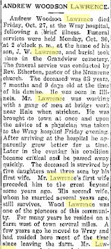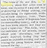 In 1917 "Mr. and Mrs. Charles Lawrence and little son, of McCook, Nebraska, spent Sunday with the former's parents, Mrs. and Mrs. A.W. Lawrence, Mrs. and Mrs. Fred Weaver and Mr. and Mrs. Dan Bocock also spent Sunday in the Lawrence home.