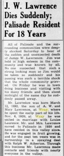 1923 "Mr. and Mrs. James Lawrence are the parents of a fine baby girl, born Saturday, Nov 2."