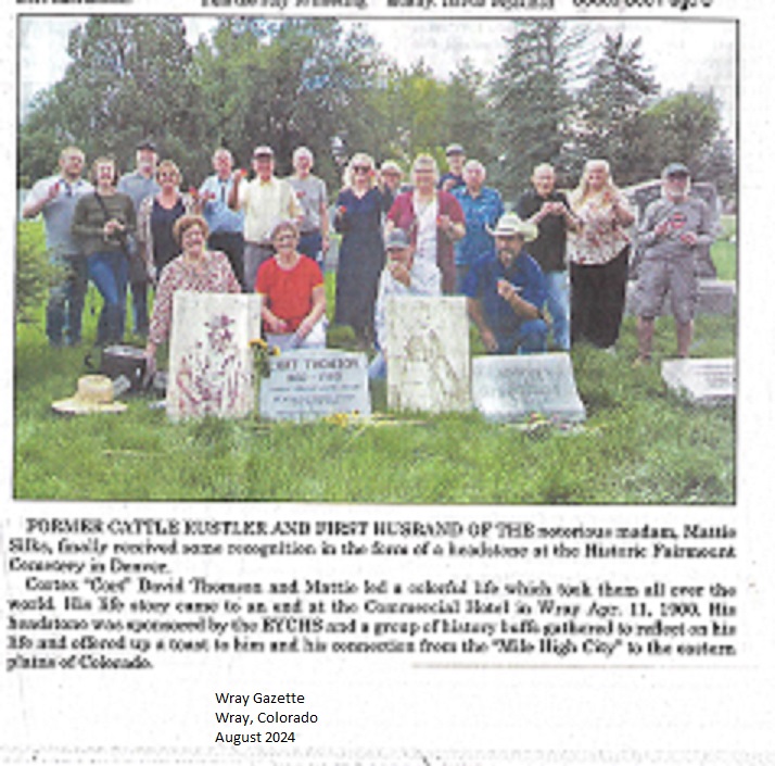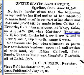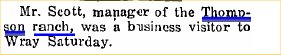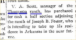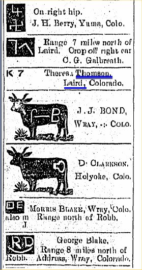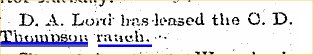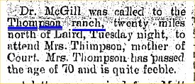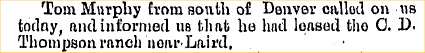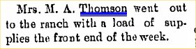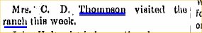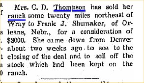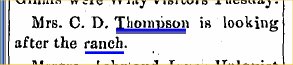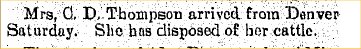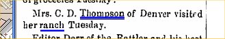 The Rattler's April 7, 1900 reported that "Mrs. C.D. Thompson was down from Denver Thursday and Friday on business connected with the ranch." (That would have been April 5th and 6th.This was a front-page item, not one from the Laird correspondent)