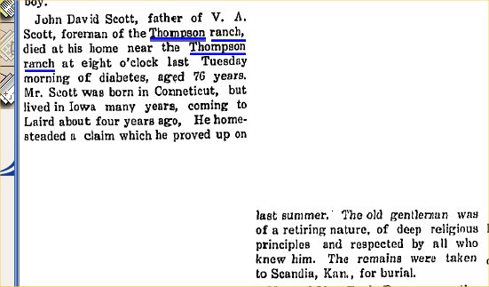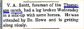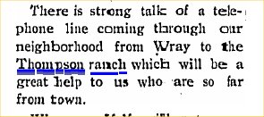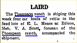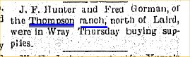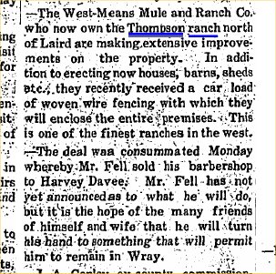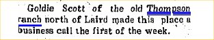 The same issue, in the Laird column, said "Perry Burns of Denver was visiting at the Thompson ranch."
