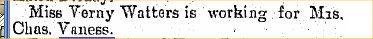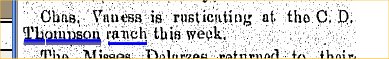October 1899 "C.D. Thompson is building cattle sheds. Charlie Vaness and Lone Rife are doing the work."