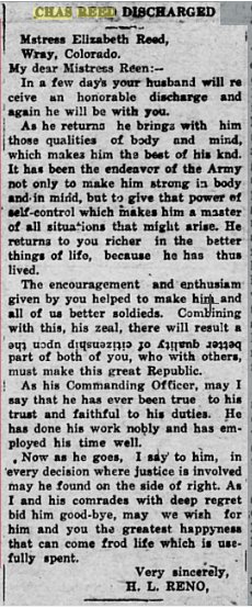 Chas. Reed, son of Mr. and Mrs. L. K. Reed of Wray, were married at the home