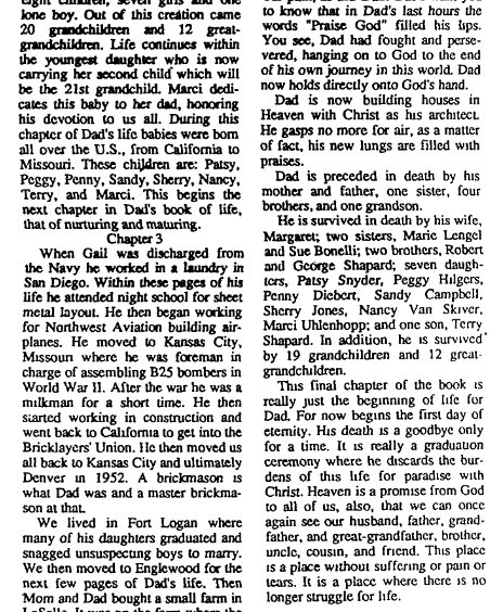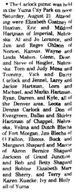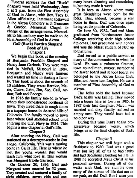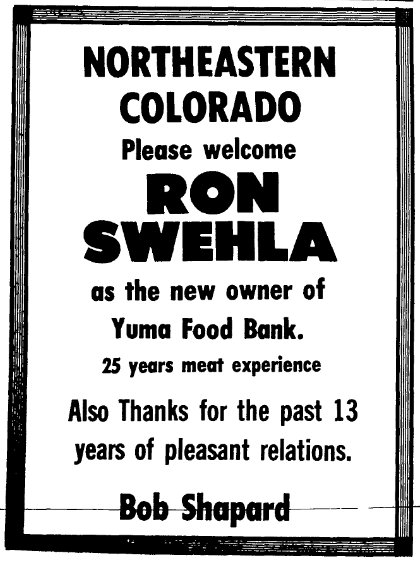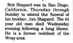 ROBERT Robert Paul Shapard was born May 17, 1919 in Wray to Benjamin F. Shapard and Nancy J. Carlock, dying January 1, 1997. October 21, 1976