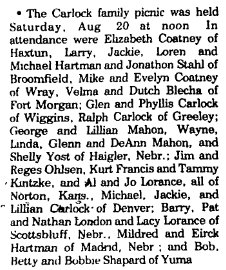 ---------------------------------------------- Jane Marie (Shapard) Lengel 1906-2003 is buried in Wray # 64658013, and John Bryan Lengel 1898-1988 is buried in Littleton # 8322631. "Jane Marie Lengel, 96, of Wray died Friday, Feb. 21, 2003 at Cedardale Health Care Centre in Wray. She was born Sept. 27, 1906, in Hanford, Mo., one of eight children to Benjamin F. and Nancy Jane (Carlock) Shapard. The family moved to Yuma County in 1915 and established a homestead. She graduated from Wray High School in 1924. On Dec. 28, 1928, she married John B. Lengel in Wray. He is deceased. Mrs. Lengel taught in the Yuma County schools for four years. In 1938, the family moved to Castle Rock and later to the Denver area. In 1960, they moved to La Salle, where she worked as a practical nurse at the Weld County Nursing Home in Greeley. Survivors are a daughter, Jan Calhoun of Denver; three sons, John of Sheperd, Texas, Robert of Colorado Springs and Richard and his wife, Barbara, of Platteville; a brother, George Shapard of Billings, Mont.; eight grandchildren; and 14 great-grandchildren. Her parents, two sisters, four brothers and a granddaughter, Melony Lengel, are deceased. Private family memorial services will be at a later date. Cremation. " ----------------------------------------------------------- John Victor Lengel 1930-2015 has an unknown burial, per # 150406434 "John was born in Wray, Colo., to John Brian and Jane Marie Lengel and grew up in Englewood. He attended Cathedral High School and subsequently served six years in the Navy through the Korean War. He was a career machinist for Wilkerson Corporation in Englewood. Upon retirement, he enjoyed many years of “RVing” residing in Shepherd, Texas, before settling in Greeley. John is survived by a brother, Robert and sister, Janis Calhoun. He was preceded in death by his parents; brother, Richard; daughter, Melony Jane; and the three women he loved Clara, Beth, and Joan. " -------------------------------------------------- Richard "Dick" Louis Lengel, 82, passed away on April 11, 2015 in Greeley after a lengthy illness. He was born October 9, 1932 in Wray, Colorado to John Brian Lengel and Jane Marie (Shapard) Lengel and was raised in Idalia, Castle Rock and Englewood, CO graduating from Englewood High School in 1950. Dick faithfully served two years in the U.S. Army with an artillery unit in Germany. Upon discharge, he returned to Colorado A&M earning a Bachelor’s degree in animal husbandry in December 1957. He met the love of his life, Barbara Allyn Smith, in January 1957 and they married June 7, 1957 on the A&M campus. He accepted a job with the USDA Soil Conservation Service and moved to Deming, NM where Brian Allyn and Susan Marie were born before the family returned to his beloved plains of Colorado in 1963. In 1964 he began his career with the USDA Farmers Home Administration and welcomed his third child Jonathan Scott. His FHA career took him to Durango, Greeley and the Denver state office where he was the Colorado Rural Housing Director prior to his retirement in 1990. He farmed and raised cattle with his father and sons throughout his life, first south of LaSalle and then on his own farm north of Platteville from 1976 to 2006 when he returned to the farm near LaSalle. His retirement was in name only as he served northeastern Colorado as a loan representative and board member for the Colorado Rural Rehabilitation Corporation. Dick was an active member and officer of the First Presbyterian Church of LaSalle, the Platteville Lions Club and the Merry Mixer Square Dance Club. Above all things was the love of his family. He loved following the family with an active interest in whatever they were doing while passing on his love of the land and his gentle, positive, caring approach to life. He is survived by his wife Barbara; children Brian, Susan (Dick Wolfe) and Jon (Edie); brothers John and Robert; sister Janis Calhoun; grandchildren Bryson (Stacie) Wolfe, Wesley Wolfe, Jordan Richard (Jessica) Wolfe, Haylie Lengel, Baylie “Adie” Lengel, Michael Lengel, Joseph Lengel and Janna Marie Lengel; and great grandchildren Savannah Wolfe, Alyvia Wolfe and Ace Richard Wolfe. Six nieces and nephews were also an important part of his life. He is preceded in death by his parents and one niece, Melony Jane Lengel. A special thanks to Crystal and Mary who provided care to Dick and enabled him to live with Barbara at home, and to all the people who cared. ---------------------------------- "Jacqueline "Jacquie" Ann Strauch, age 69 of Greeley died Wednesday, May 15, 2013 at North Colorado Medical Center. Jacquie was born April 6, 1944 in Wray, Colorado to James and Bette (Potter) Shapard. Jacquie married James E. Strauch on June 4, 1966 in Commerce City, Colorado. Jacquie and James came to Greeley in 2008 from Tahlequah, Oklahoma. Prior to living in Oklahoma, they lived in Mead, Colorado from 1972 to 2006. Jacquie was a housewife and a volunteer school nurse for the Mead Elementary and Mead Middle School. She loved to bowl and had bowling trophies, pins and other bowling awards. She loved to play the piano, made beautiful homemade Christmas decorations and most of all loved her family. Jacquie is survived by her husband James of Greeley, one son Greg Strauch and his wife Leann of Platteville, two sisters Judy Adams of Longmont and Pat Fuller and her husband Boyd of Johnstown. In addition, her step-mom Betty Shapard and her half sister Bobbie Shapard, both of Yuma, survive her. Jacquie also has three stepsisters, Judy Walters and her husband Bing of Brighton, Jean Gilbo of Thorton and Joyce Castin of Yuma. She has two grandchildren, Rebecca and Rachel Kennedy of Dallas. Jacquie was preceded in death by her parents and one daughter, Debora Jean Kennedy, who died in 2006. Memorial services will be Wednesday, May 22, 2013 at 11:00 a.m. at the Howe Mortuary Chapel. Services will conclude at the mortuary with a reception in the Event Center." |