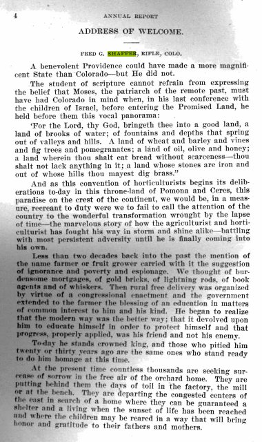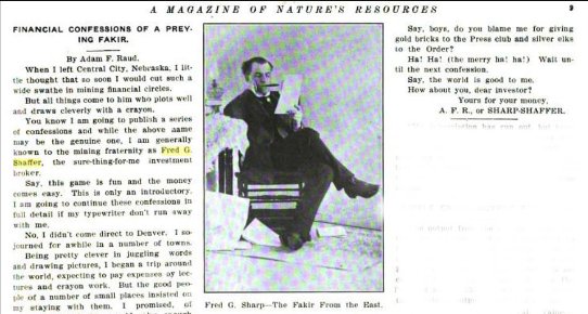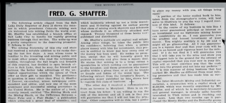 Well known among the business men of Woodland is Fred Shaffer, who conducts a real estate and insurance office and has an excellent patronage, well deserving the success that is his. People know him not only for what he has accomplished as a realtor but also for his promotion and publicity work in connection with the valley and its opportunities. He has firm faith in this section of the state and in its future and he is constantly striving to present its advantages to the general public. California certainly has no more loyal citizen than Mr. Shaffer, although he is not a native of the state. He was born in Bridgeport, Madison county, New York, June 7, 1868, and was four years of age when the family removed to Lone Tree, Nebraska. There he remained on a farm for twenty years and during a considerable part of that period attended the public schools of his home neighborhood. He afterward followed the profession of baseball with the team of Lincoln, Nebraska, which belonged to the Western Association, but owing to an injury to his hand was obliged to give this up. He then became a sports writer for the Nebraska State Journal and later went to Denver, Colorado, where he was editor of the Denver Times and also city editor of the Denver Post. He took an active part in politics during that period and campaigned the state in support of several candidates, especially assisting in the campaign of Phil Stewart for the governorship of Colorado, but he was defeated. He also reported two sessions of the state legislature and was well versed upon all questions vital to the commonwealth. While in Nebraska he was a close friend of William Jennings Bryan, the 'Boy orator of the Platte,' and was associated with him in his campaigns. In 1913 Mr. Shaffer came to the Pacific coast and was made traffic manager for the California, Oregon & Nevada Railroad, with headquarters at Reno, Nevada. From 1916 until 1920 he was secretary of the Yolo County Board of Trade, and thus much of his life has been given to publicity work of various kinds. In March, 1928, he entered the real estate and insurance business with his son, Ford Shaffer, as a partner, and is making substantial progress in this field. It is by reason of his promotion and publicity work, however, in the Sacramento Valley that he is best known. With the able assistance of his wife, he spent two years in Los Angeles, representing twenty-one counties in the Sacramento Valley with county exhibits. He has also represented Yolo county with exhibits of its products and won first prize at Sacramento in the State Fair of 1929. Again, in 1930, at the Los Angeles land county exhibitions in the city of Los Angeles he won the first prize. It is largely due to his efforts that Yolo county has won twelve grand prizes in eight years, as follows: 1917—grand prize at the California State Fair for the best exhibit of general products by any county in the state; 1917—grand prize at the State Francisco Land Show for the best exhibit by any county in California; 1917—grand prize at the San Francisco Land Show for the best exhibit by any county in California; 1918—grand prize at the State Fair for the best exhibit by any county in California; 1918—grand prize at the State Fair for the best exhibit of general products; 1919—grand prize at the State Fair for the best exhibit of any county in California; 1919—grand prize at the State Fair for the best exhibit of general products; 1919—grand prize at the San Francisco Land and Industrial Exposition for the best exhibit by any county in the state; 1922—grand prize at the State Fair for the best agricultural exhibit by any county in California; 1923—grand prize at the Pacific Slope Dairy Show in Oakland for the best exhibit by any county in Califonia; 1924—grand prize at the State Fair for the best agricultural exhibit by any county in California; 1925—grand prize at the Pacific Slope Dairy Show in Oakland for the best exhibit by any county in the state. Mr. Shaffer is a fluent and convincing public speaker and has addressed many gatherings in the valley upon subjects relative to its development and progress. He has also talked extensively over the radio and he has visited every city of any size in the valley, stimulating cooperation and awakening interest in his practical and far-reaching plans. In 1919 he was a member of a committee of twenty-one in the forty million dollar bond issue for the building of roads and highways in the state and his support can at all times be counted upon to further any plan or measure for the public weal. Mr. Shaffer served as president of the first Exhibitors Association of California for fair exhibits. He is a past president of the Woodland Lions Club and a member of Woodland Lodge, No. 1299, B. P. O. E. His hobbies perhaps are the Boy Scouts and the Young Men's Christian Association and he has done most effective and far-reaching work along those lines. In 1895 Mr. Shaffer was united in marriage to Miss Grace Belle Ward, a native of Nebraska and a daughter of Ben Ward, who was chief scout under Buffalo Bill during the Indian wars. The children of this marriage are: Ford; Mrs. Reva Hart, of Sacramento; and Mrs. G. F. Cloud, who has two children, Peggy and Grand Cloud. The dominant spirit of Mr. Shaffer is a constructive one. He has ever been a builder and he has builded wisely and well, accomplishing far-reaching results through his contagious enthusiasm, which has ever been based upon practical methods and high ideals. FORD One of the leading insurance and real estate firms in the Sacramento Valley is that of Fred Shaffer & Son, of Woodland, of which Ford G. Shaffer is the junior member. This is a progressive and enterprising concern, conducts its business in accordance with the highest business ethics and commands the respect of the public to a marked degree. Ford G. Shaffer was born in Idaho Springs, Colorado, on the 20th of May, 1903, and received his early education in t