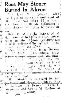 Eva Irene Westcott, daughter of John F. Stoner and Rose Kietcher, born at Yuma Colorado Dec 18, 1908, died February 3, 1965 at Weslaco, Texas.