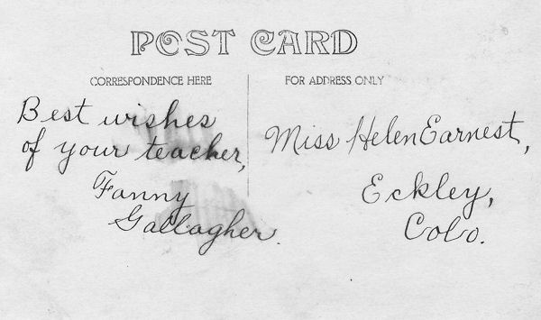 Addressed to Miss Helen Earnest, Eckley, Colorado