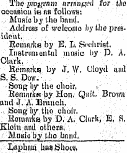 Seats were improvised from lumber furnished by D. A. Clark, and in the afternoon