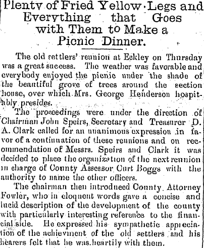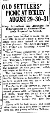 The Annual Old Settlers Picnic at Eckley, which must have been the 28th or